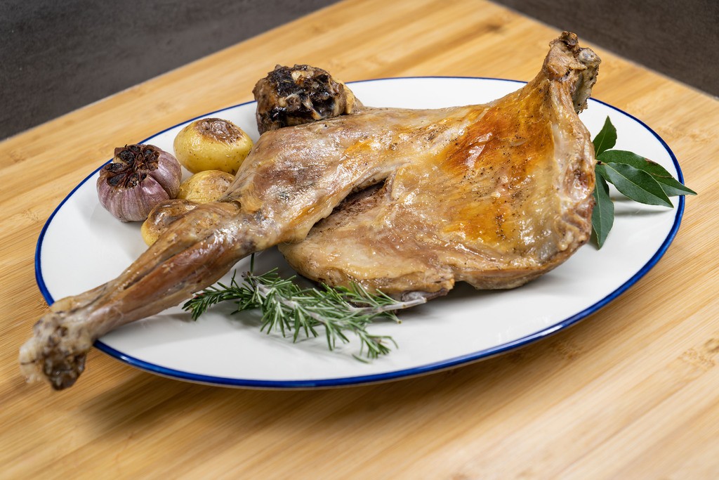 Cabrito lechal eco asado a baja temperatura.